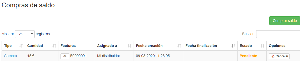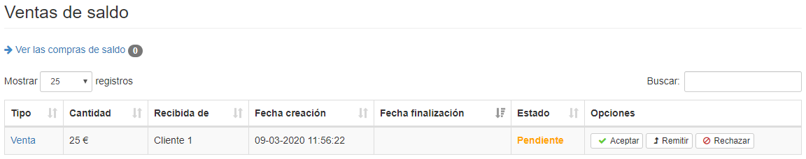 Si por cualquier motivo no quieres aceptar una compra de saldo de un cliente y/o distribuidor tuyo, puedes pulsar el botón 'Rechazar' para anular dicha compra, generando así automáticamente un abono de la factura asociada.