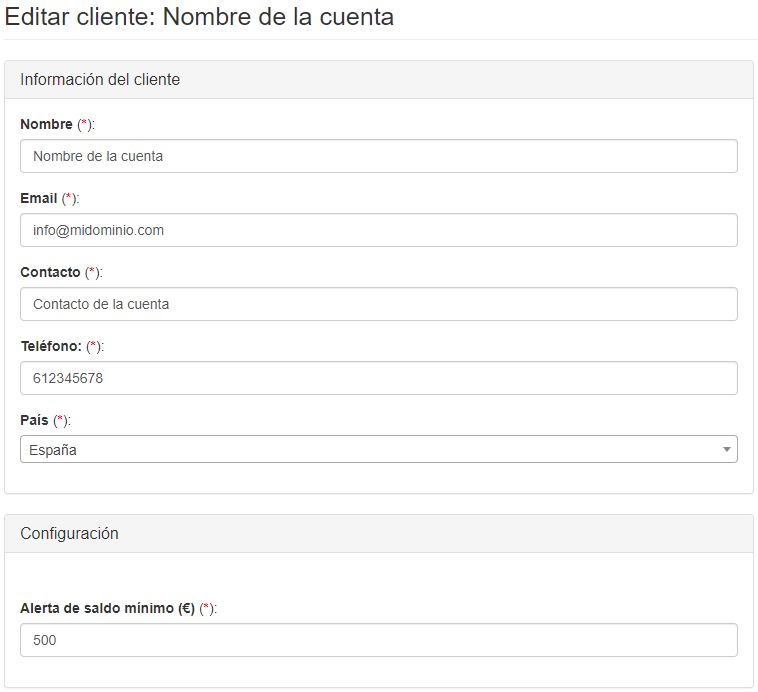 De este modo, si el saldo de tu cuenta en cualquier momento esta por debajo de la cantidad de € configurada en la alerta de saldo mínimo, se te enviará un correo electrónico informando de esto, y te aparecerá un aviso en el portal.